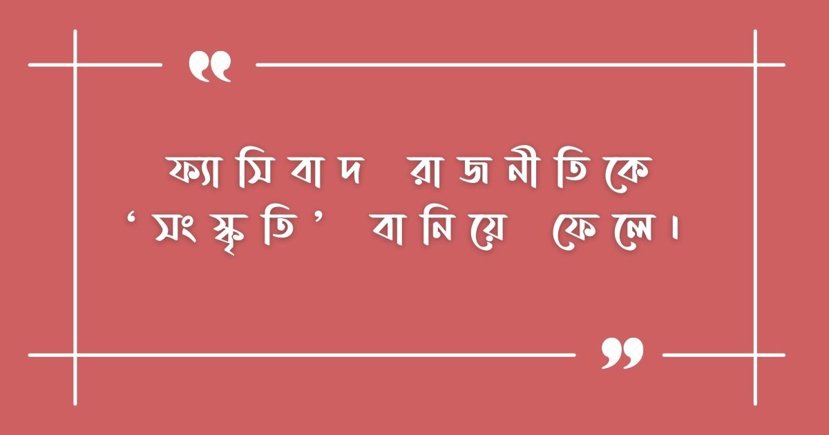 ফ্যাসিবাদ রাজনীতিকে ‘সংস্কৃতি’ বানিয়ে ফেলে।